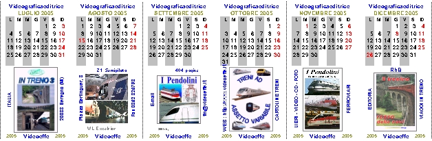 La videoeffe dal 2000 distribuisce ai propri acquirenti un calendario pieghevole formato tessera, quindi tascabile. l'omaggio viene offerto dalla fiera di settembre fino all'inizio del nuovo anno, sia ai clienti diretti che a quelli per corrispondenza.